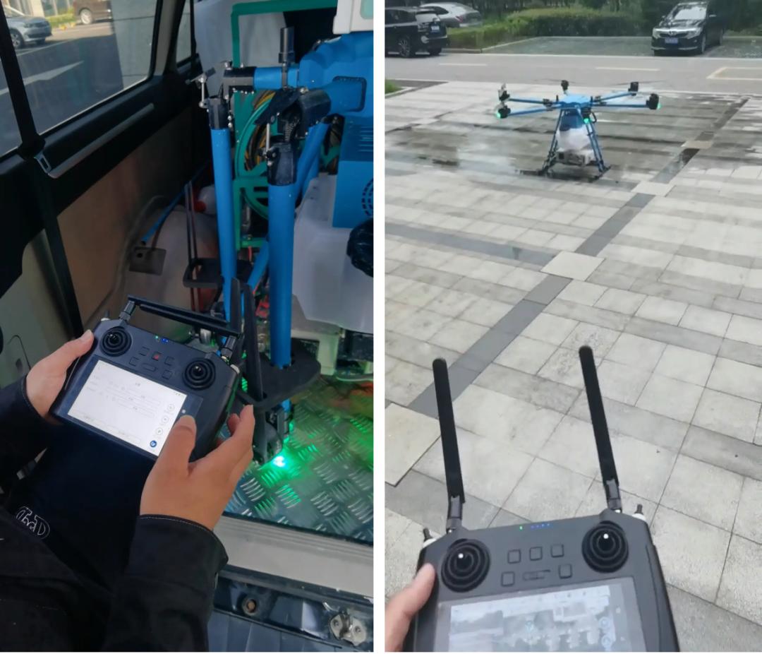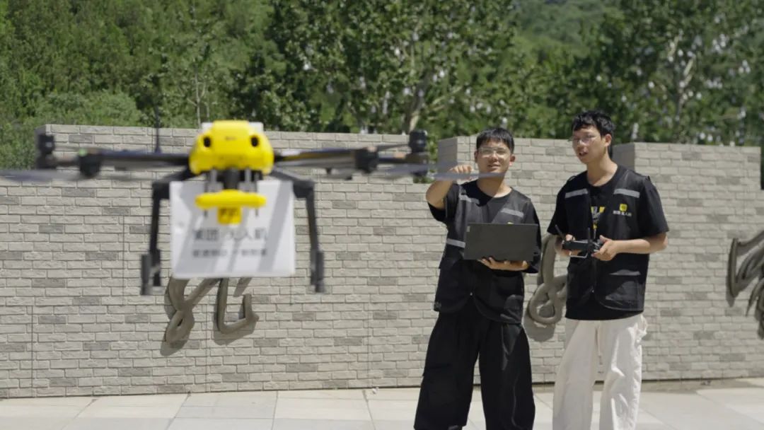 团队成员正在操作无人机