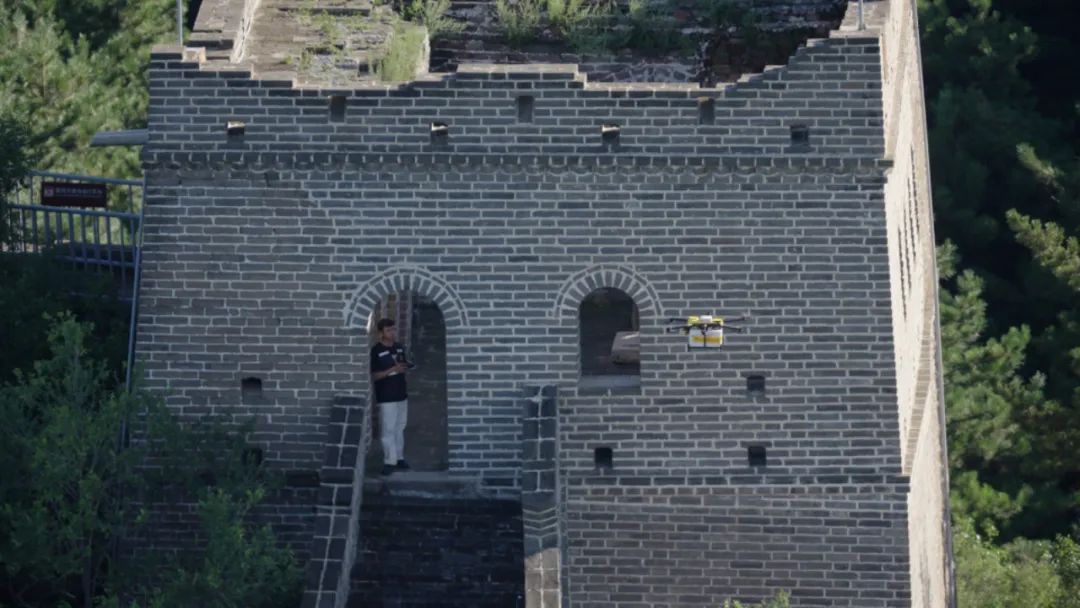 罗锡坤在八达岭长城操作无人机