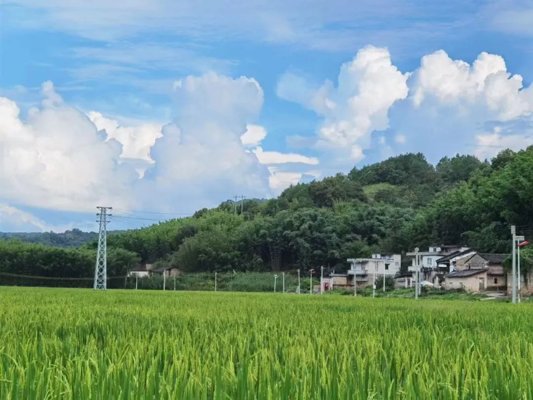 盛夏时节,黎颖钧位于贺江边的家中稻田
