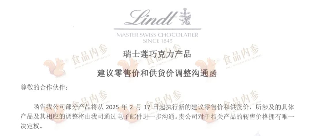 瑞士高档巧克力品牌瑞士莲士今年二月(Lindt)由于可可豆原料价格持续上涨,以及品牌价值提升的需要,发布了《建议零售价与供货价格调整沟通函》,宣布部分产品价格上涨。三月底,玛氏(Mars)德芙巧克力等商品下发涨价通知,幅度在4.9%-15%之间。4月,费列罗(Ferrero)它已经成为另一家跟进涨价的龙头企业。公司发布巧克力产品价格调整函,涉及健达品牌的四款产品,价格从2025年6月1日开始上涨6%-8%。