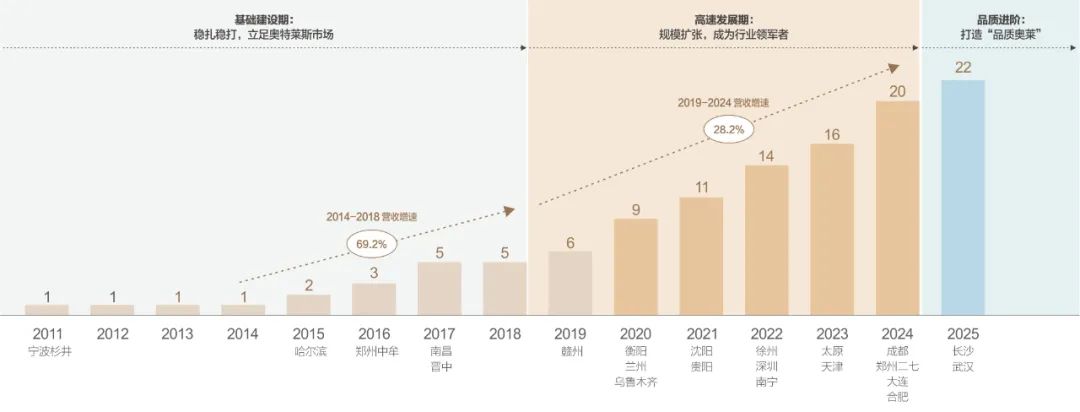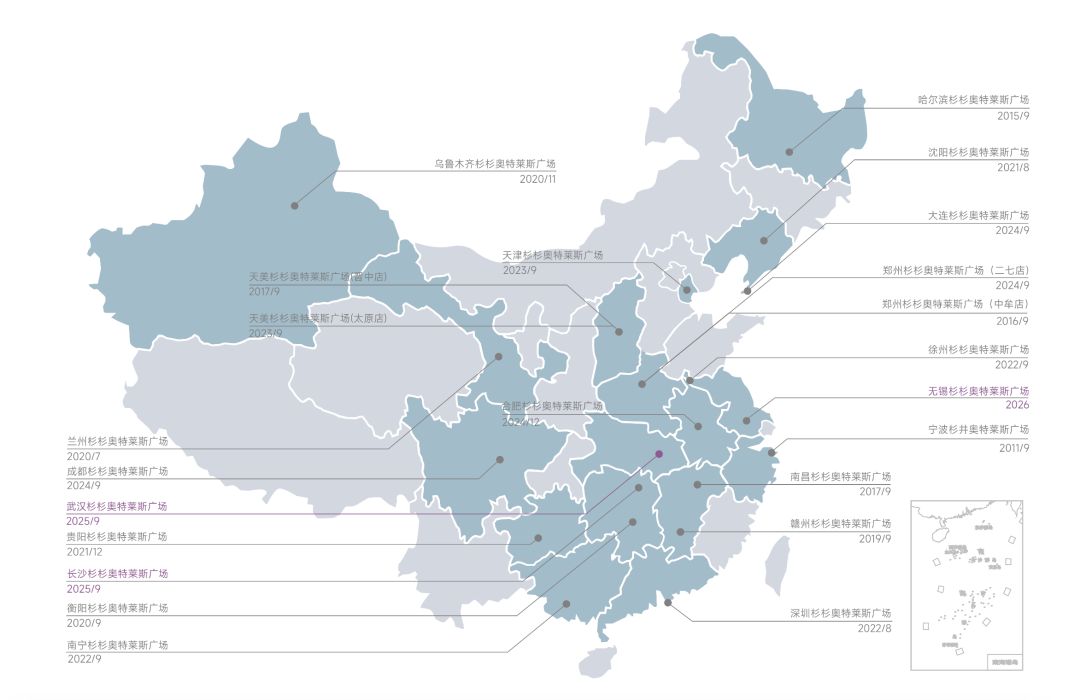 2019年,杉杉商业获得唯品会全资收购。在资本的加持下,杉杉商业开始了逆势扩张的浪潮——在全球疫情对实体商业的不断影响下,不仅提前实现了“成为行业前三”的发展目标,还在2020-2024年间实现了年均2.8个项目的规模增长率,项目选址逐渐渗透到一线核心城市。