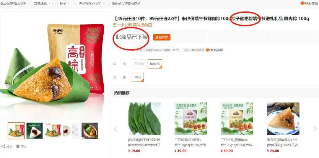 此外,小编还注意到,来伊份的另一款“蜜枣粽”也已在电商平台上下架,该产品由靖江三阳食品有限公司委托加工。