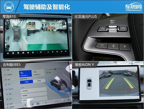在驾驶辅助配置方面,比亚迪元 PLUS 整体性能更加全面,不仅在四款车中享受并线辅助、倒车车侧预警系统、遥控停车、辅助变道,还配备了全速自动巡航、车道中心维护和透明底盘。 /540 程度图像,能为驾驶员提供更安全、更舒适的驾驶体验。埃安 AION Y 整体表现有些拉胯,配备缺失较多,甚至有些日常使用频率较高的功能都没有配备。吉利银河 E5 虽然设备水平同样不高,但是有些设备提供了选择的机会,自由度更高。