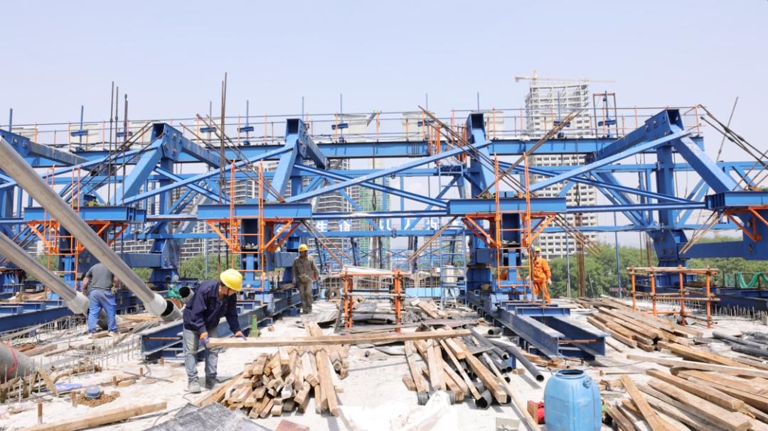 混凝土浇筑期间,各施工队采用并行运行模式。钢筋团队在后台制作钢筋,预应力团队安装钢绞线穿束和夹层锚具。目前,现场六七个工作组紧密合作,计划330天的工期通过科学规划流程缩短至300天,成功缩短近一个月。