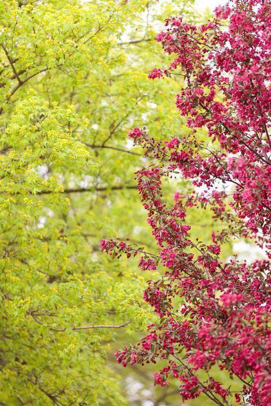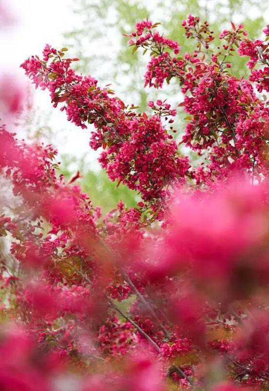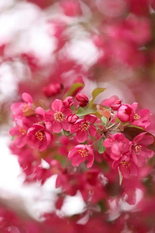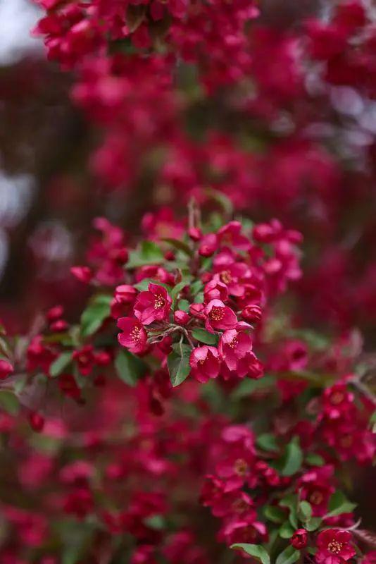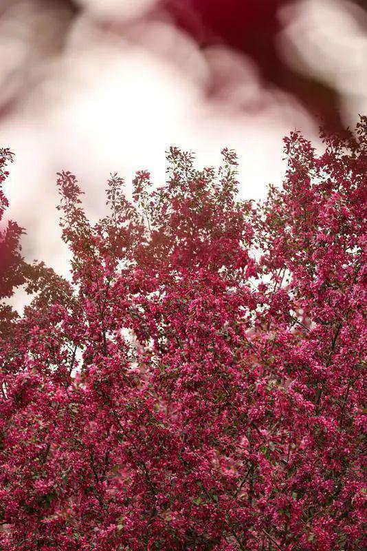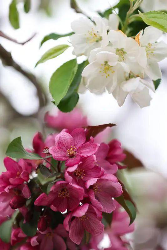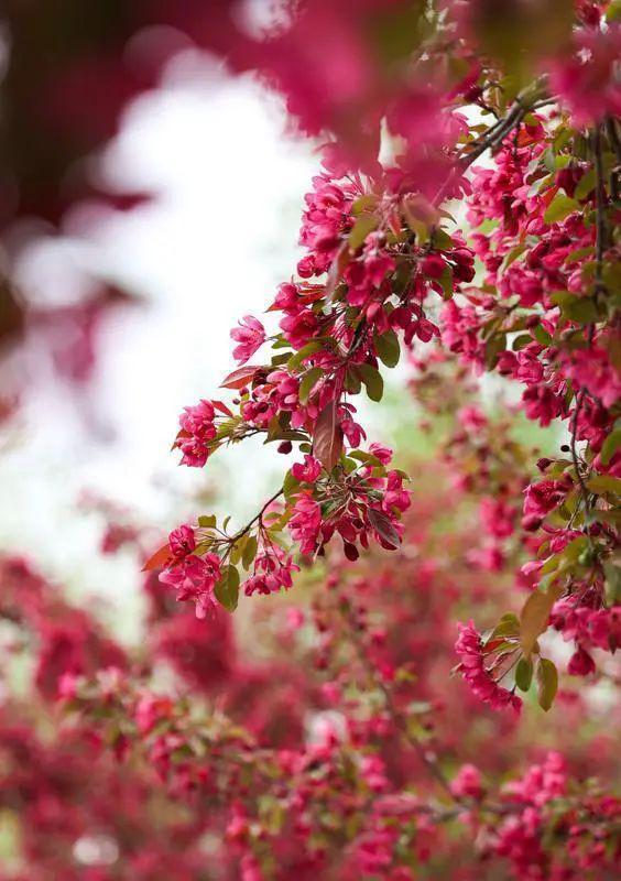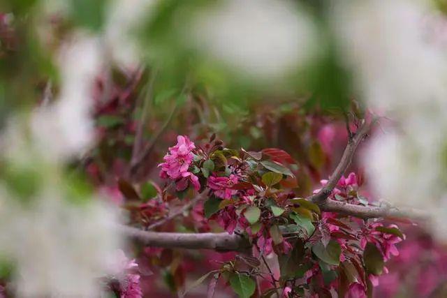 海棠属玫瑰科,苹果属落叶小树,株高可达。 7 大米,树杆有光泽,花量大,颜色多,有白、粉、红、红,多有香味;花期是 5 月初,海棠花观赏价值高,花色、叶色、果色、枝条色彩丰富,是欣赏园林树种的较好方法。