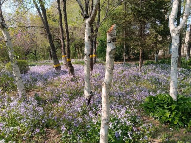 二月兰因其顽强的生命力,成为城市绿化中不可缺少的地被植物。二月兰是林园公园的标志性花卉之一, 2019 2000年起,园区东北角播种繁殖,播种面积约为 50 平方米。截至目前,园内二月兰总面积已超过 3000 平方米。