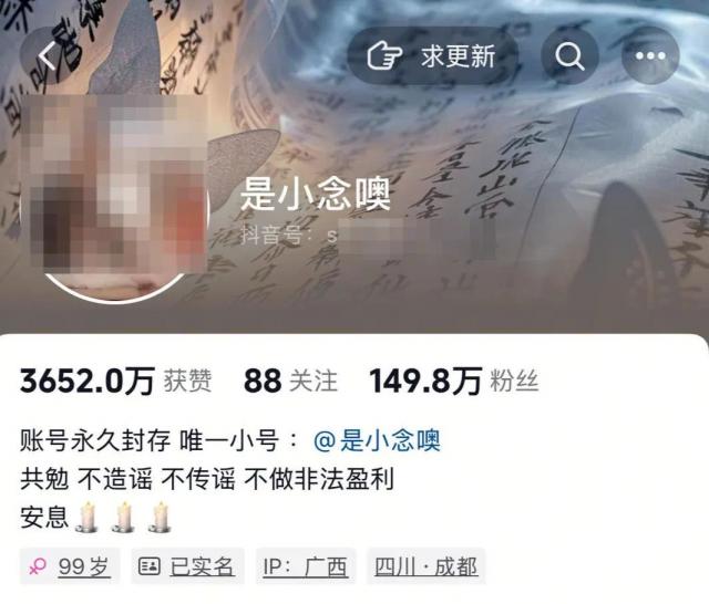 5 月 11 日凌晨 4 点 23 分数,抖音帐号" @就是小念哦“发视频说,这个账号的博主真名孙某,”已于于。 2025 年 5 月 10 日 23 点,在成都自杀死亡,其帐号已交给亲友管理。关于自杀的细节,请不要相信谣言,不要传播谣言…”