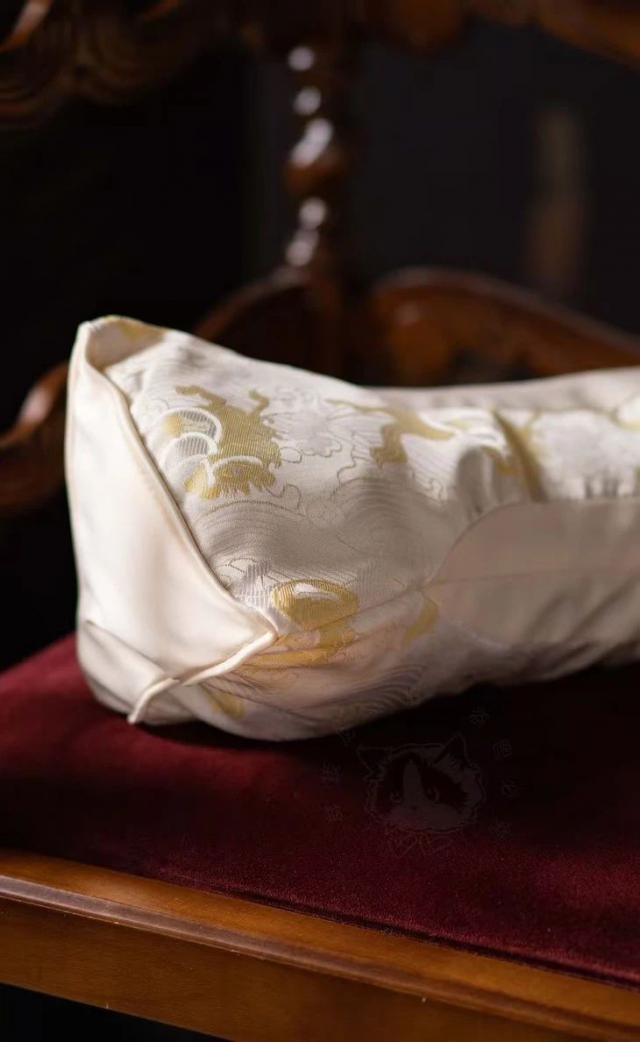 这款锦缎花草枕,功能多样。作为新中式高档养身美学的典范,布料也非常适合夏季。