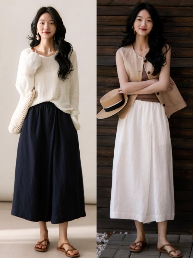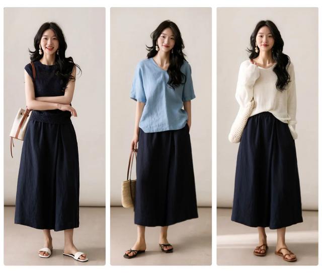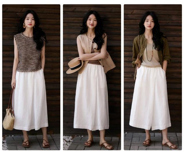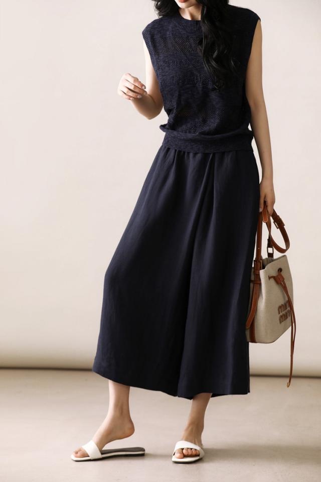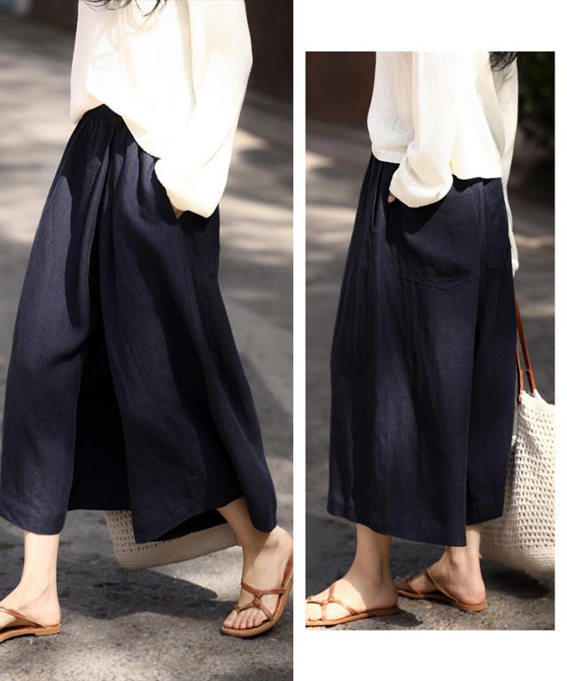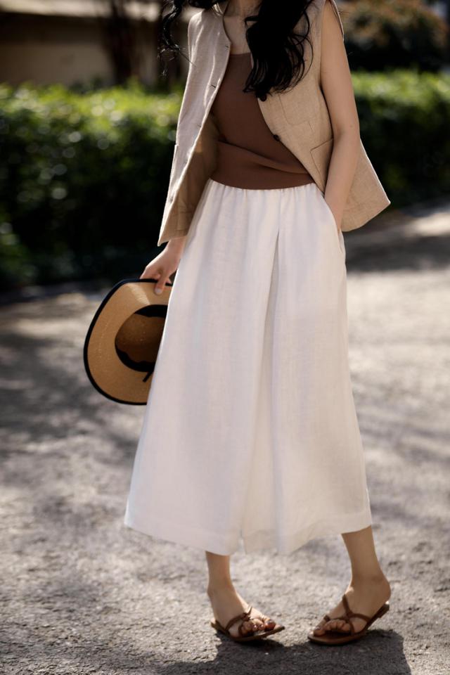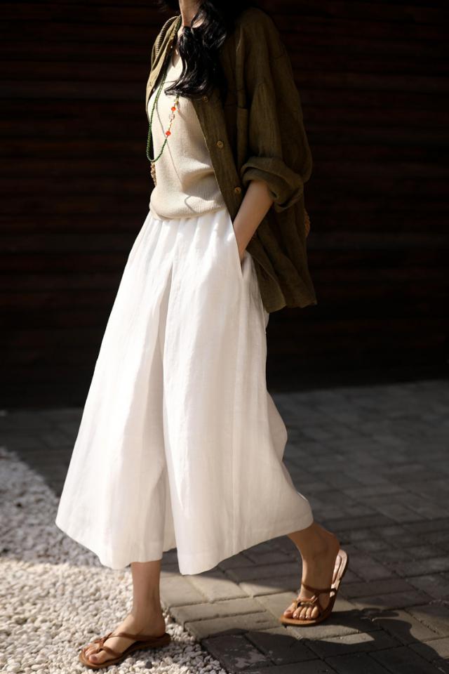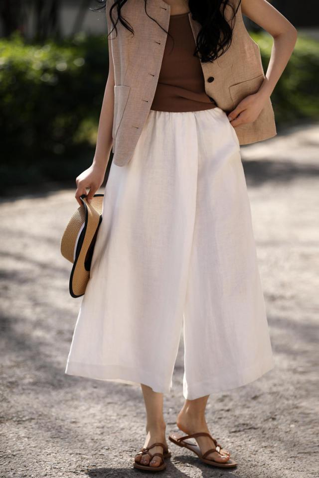 麻类别的单品该如何穿?今日,掌柜将与大家分享今年夏天一定不能错过的单品——伊杉汉麻阔腿九分裙。