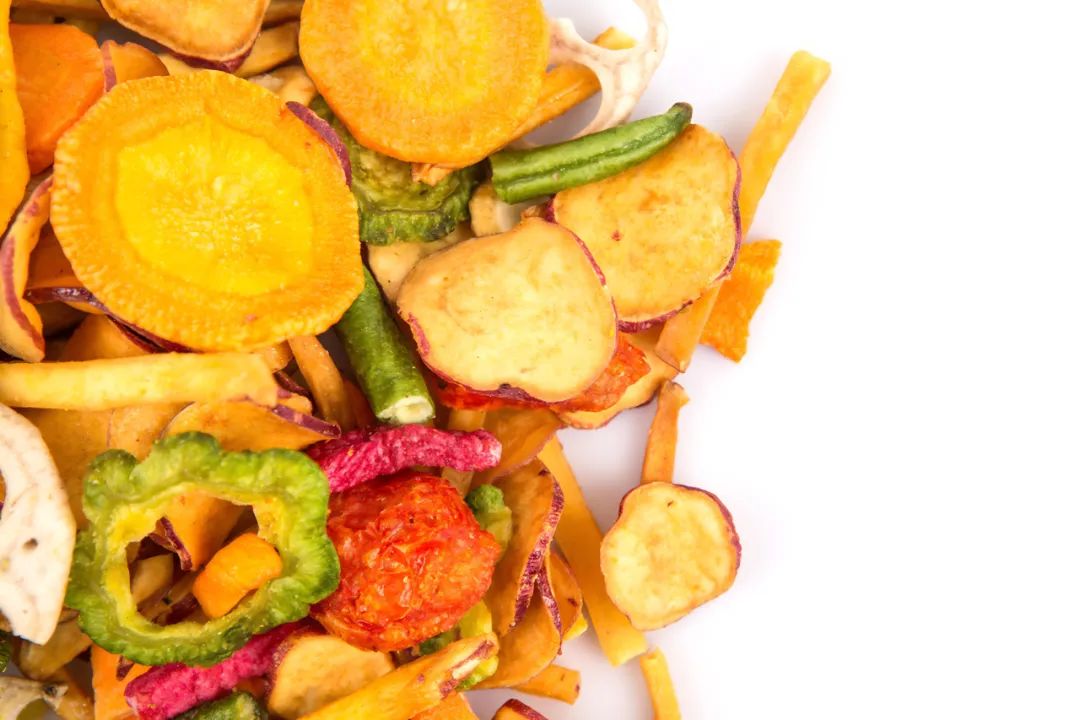 在制作过程中,在真空环境中,油温在90~120℃范围内恒温加热食物,利用油比空气传热更好,慢慢“逼”食物内部的水分。这种温度不仅可以使水分流失,还可以使食物焦化和变色。最后,通过离心机或吸附去除表面油脂,可以获得酥脆的脱水食品,颜色保留良好。