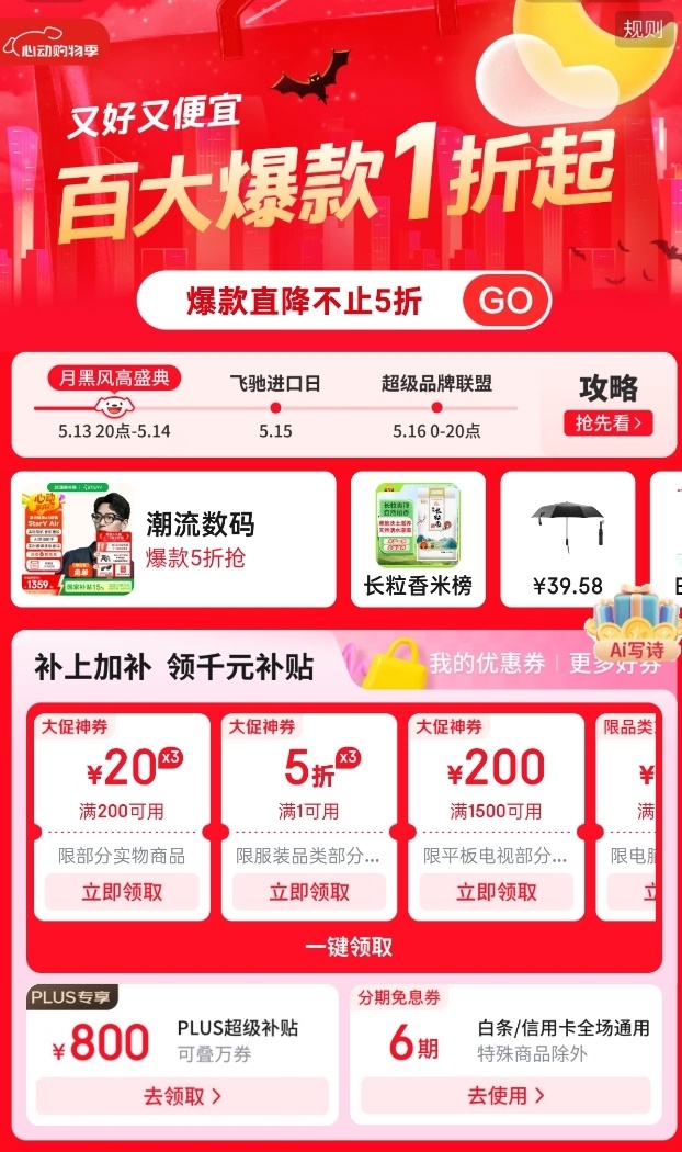 从小雷的经验来看,1000元的补贴主要是分类发放部分优惠券。此外,PLUS会员专属补贴也已上线。除了800张优惠券,所有员工还发放了6张借条免息券和惊喜红包。目前应该是全品类。