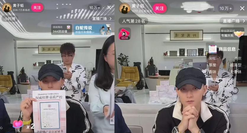 今年4月11日,黄子韬开始直播,宣布将推出5万个试用产品,最终推出4.95万个卫生巾试用礼盒。黄子韬说:「亲朋好友订了500单」 "我永远不会做任何对不起家人和朋友的事。