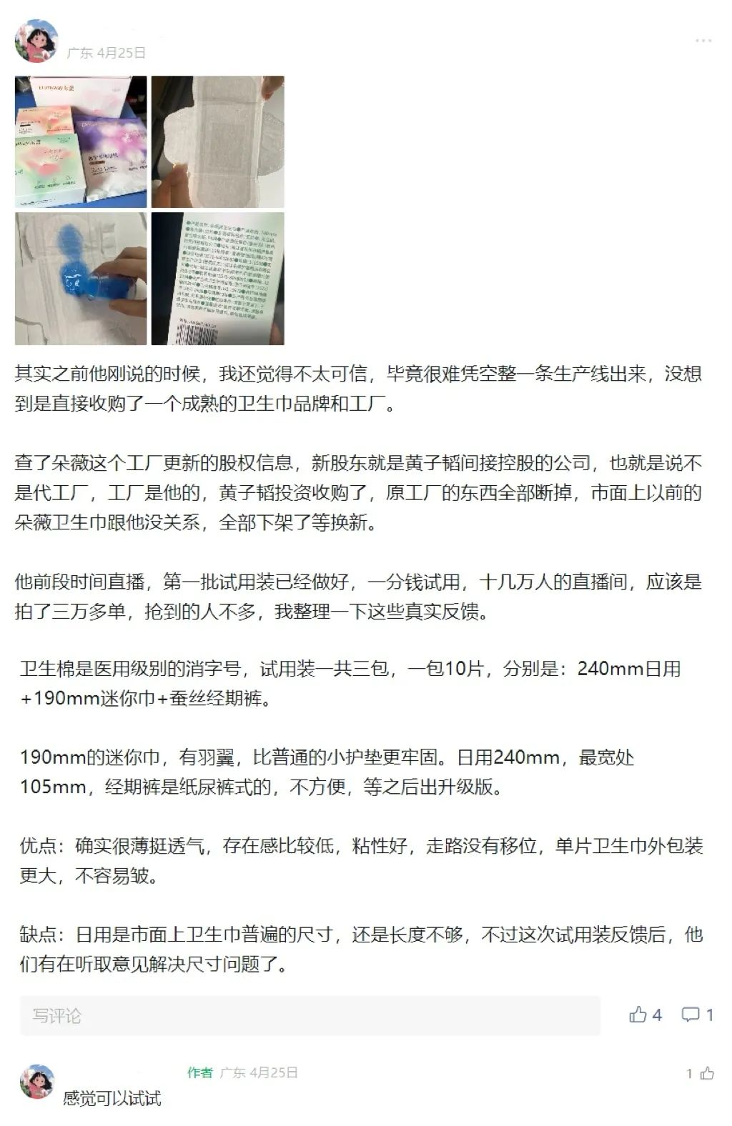 同月,黄子韬正式收购浙江金华一家卫生巾厂,开始研发产品。也就是说,我们现在看到的主要推广“透明工厂”概念工厂,生产过程24小时直播。
