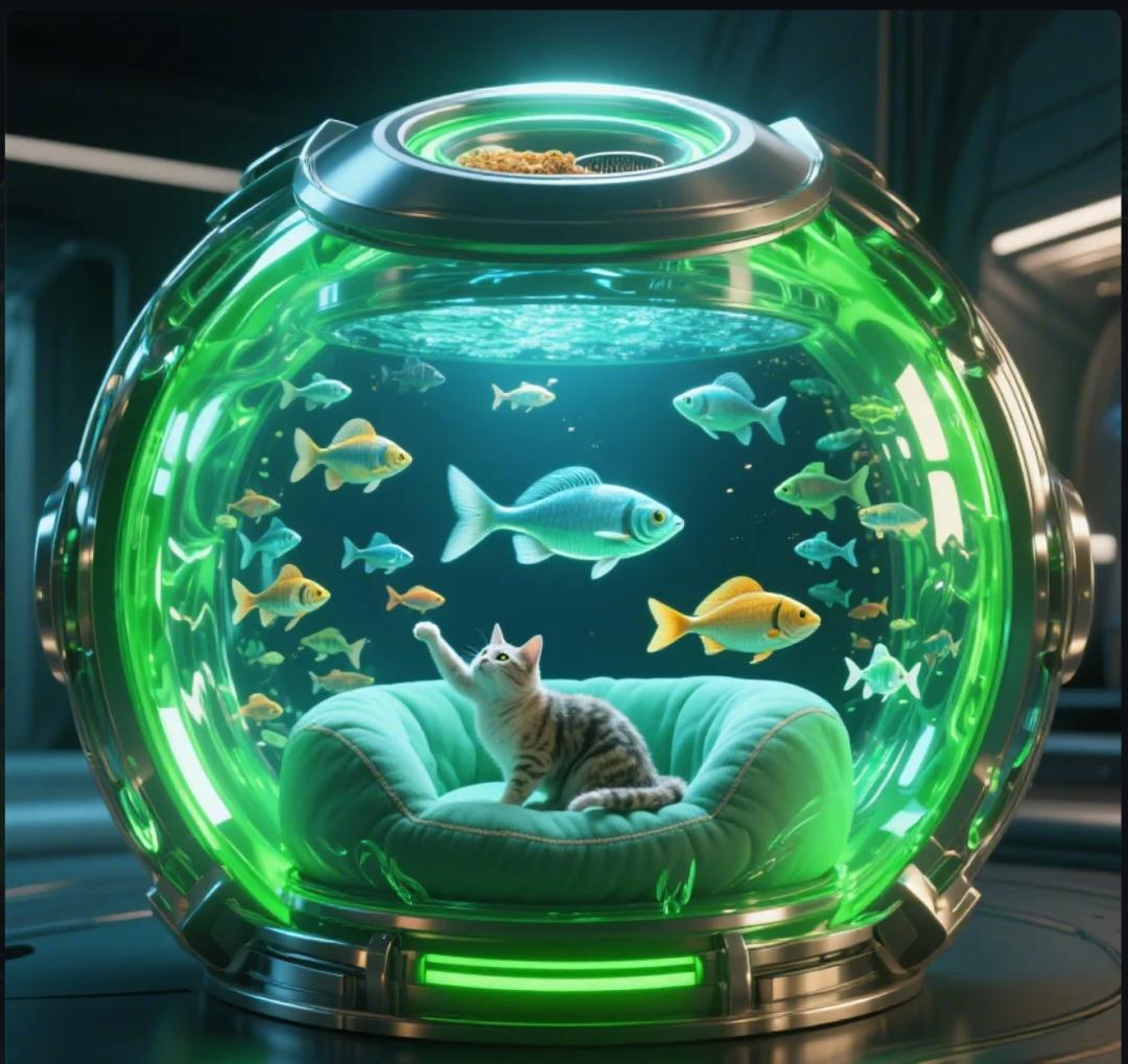 光是酷是不够的。一些主人担心他们的猫在猫窝里能做的事情太无聊和单一,所以他们为它们做了几个不同的东西——例如,这个猫窝可以被鱼包围,这样小猫不仅可以看到手指,还可以看到令人垂涎的食物;还有一个高科技的猫窝,设计有星空屋顶,可以智能加热。经过长时间的了解,猫的世界开始变得智能化。