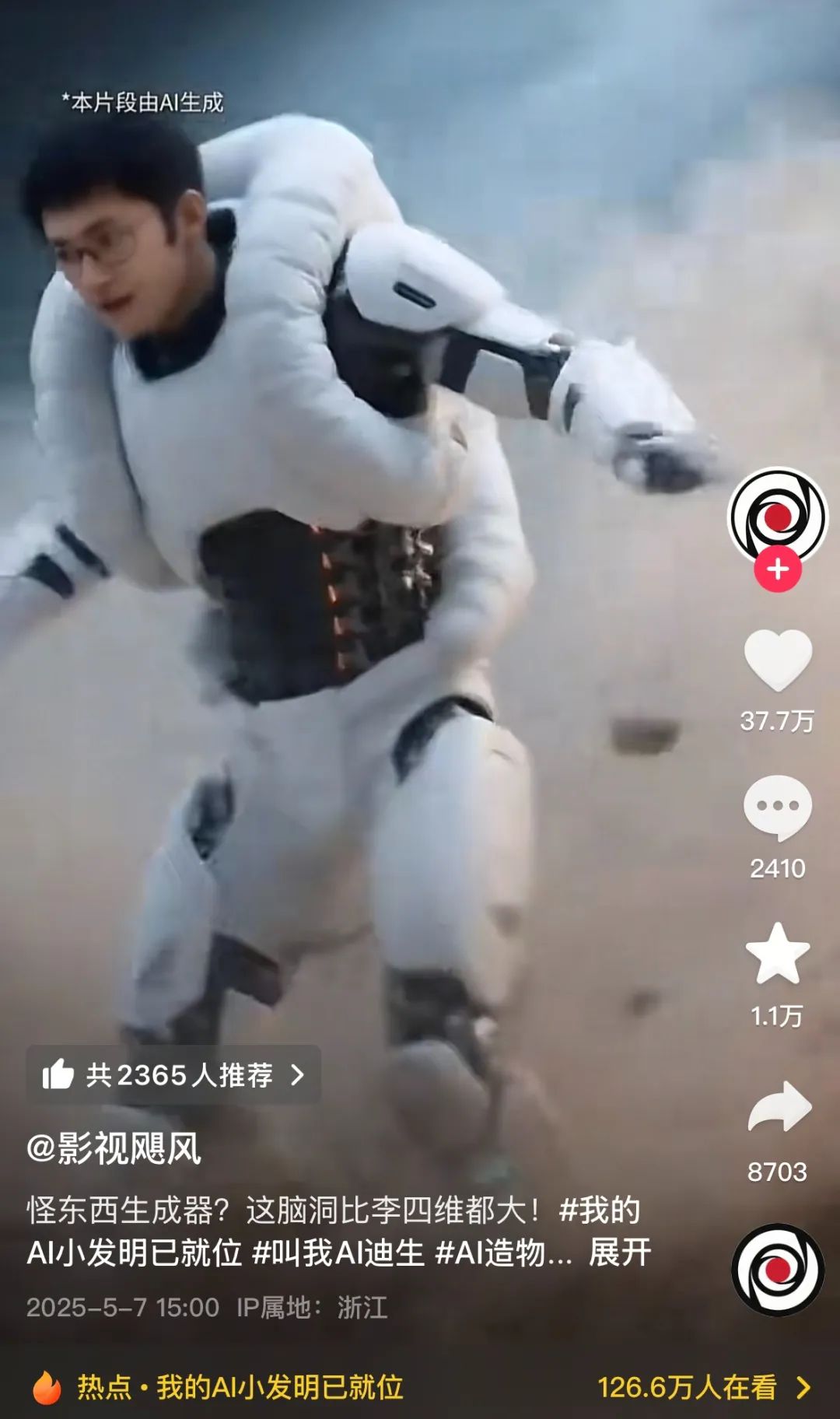在AI的加持下,这些曾经只能用语言来形容,听起来难以想象的脑洞逐渐从虚幻变得更加生动,可以落地。不只是@影视飓风,我发现还有很多年轻人,都开始整个生活。