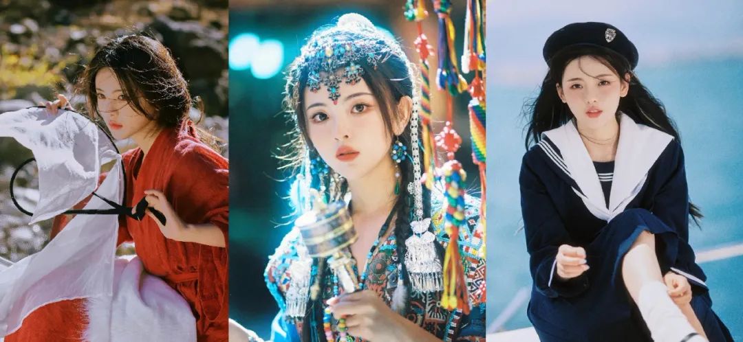 “也卷古月”和“林初寒”更擅长现代化妆和照片。“也卷古月”多与当红小花合作,为杨超越拍摄的“三件套少女主题”——水手少女、神明少女、民族少女相当受欢迎。粉丝们笑着说:“我不知道我养活了多少照片馆。”。