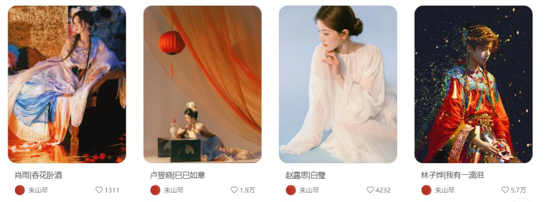 比如上面提到的杨超越与“也卷古月”合作的三组照片,成为了很多小红书客户和照片馆的样品,也在一定程度上推动了线下照片行业的发展。
