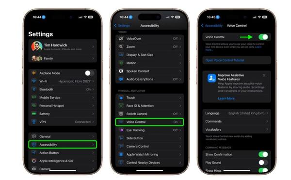 之后,语音控制可以通过重新转换设置中的开关来禁止。
