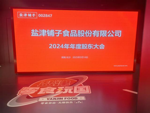 财联社 5 月 15 日讯(记者 吴蔚玲)“海外市场的潜力特别大,公司在出海这件事上,目标是坚定的。”盐津店(002847.SZ)公司董事长张学武, 2024 财联社记者在年度股东大会上表示。