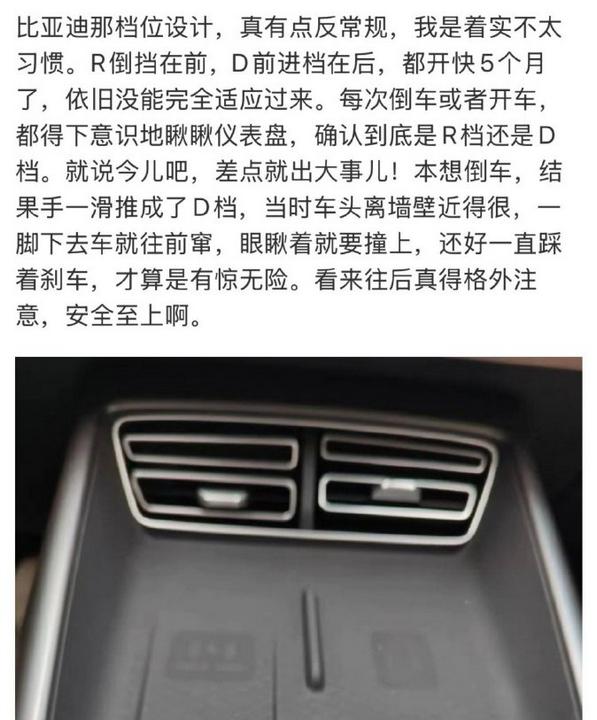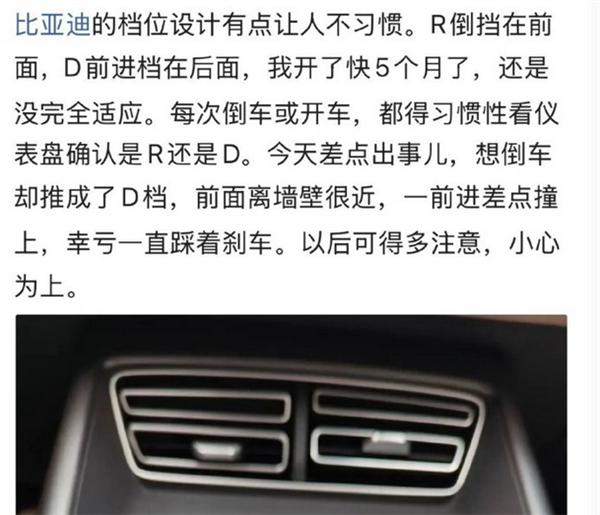 快科技 5 月 14 日消息,此前有网友向比亚迪新闻打假办公室提供线索,称部分账号在不同平台上抱怨比亚迪倒车挡和前进挡的位置设计错误。