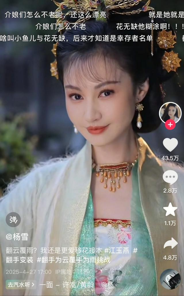 日前杨雪分享了视频,再现了剧中江玉燕的造型,也让网友感叹:“武侠剧我只认你一个”。