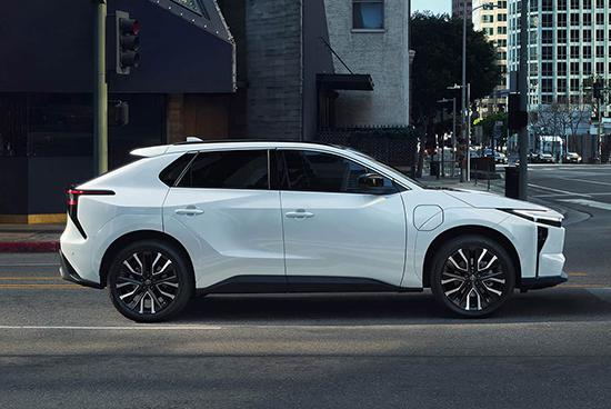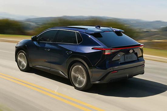 外表方面,丰田 bZ 去掉了老款车型复杂的设计元素,前脸配有分离式大灯,顶部为贯穿式。 C "形日间行车灯,下面远 / 两侧狭长的进风口装饰中融入了近光灯组,大大增强了层次感。