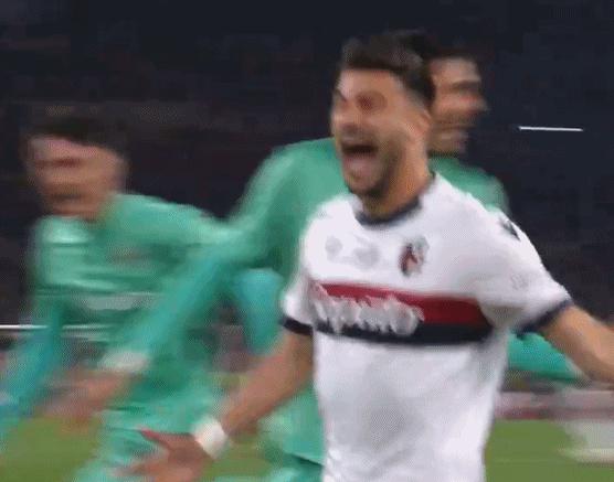 在混乱的战斗中,博洛尼亚的恩多耶得球,横盘后,恩多耶右腿抽射,攻克 AC 大门是米兰。