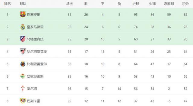 通过这种方式,皇马积分达到 78 得分,多赛一轮距离第一轮。 4 得分,保留夺冠的希望,同时拒绝让巴萨提前躺下锁定冠军。如果巴萨接下来夺冠,将是球队历史上的第一名。 28 座西甲冠军,依然排在历史第二,仅次于皇马。 36 冠。