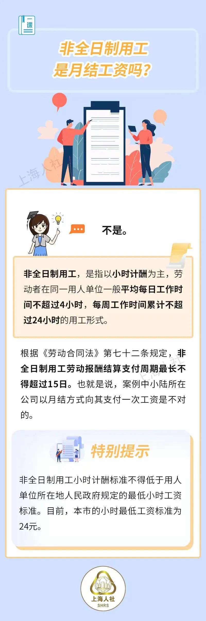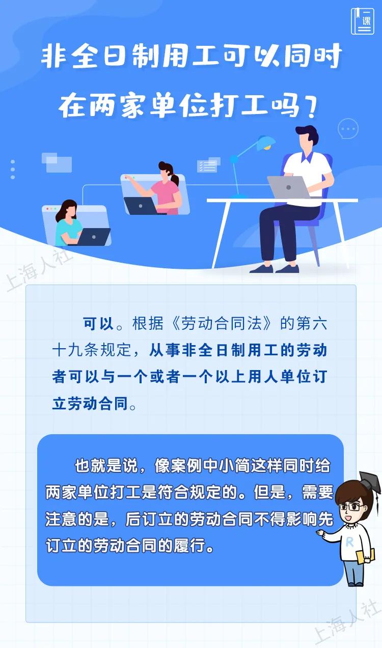 又到了劳动法规科普的时候了!今天就和大家一起关注一下“非全日制就业”的相关问题——非全日制就业能同时在两个单位工作吗?工资是月薪吗?实习期可以约定吗?我们来看看市人力资源和社会保障局的回答↓
