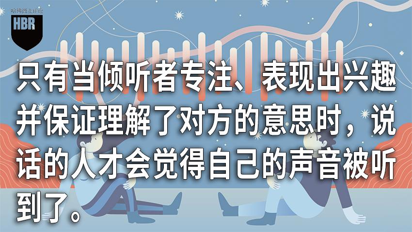 良好的倾听是一项艰巨的任务,需要投入时间。在研究中,我们发现说话的人只有在倾听者集中注意力、表现出兴趣并确保理解对方的意思时,才会觉得自己的声音被听到了。