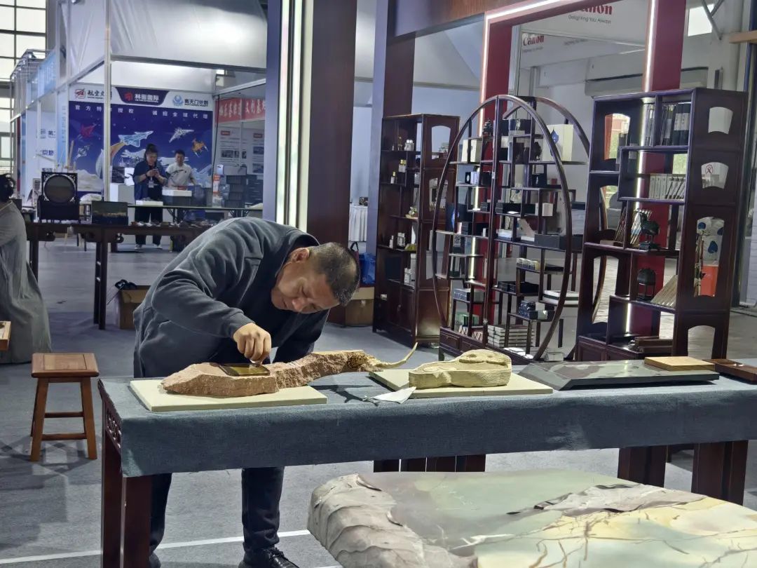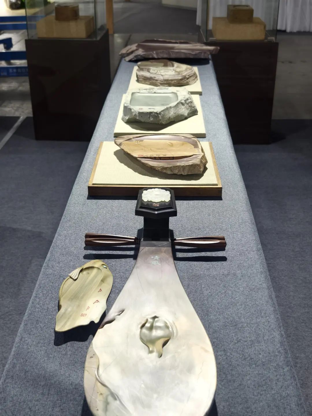 工艺美术大师纯手工雕刻的清宫砚,1980年松花石鉴赏会上著名的题词,用石头的俏色雕刻的松花石工艺品...“松花魅力”展区更加耀眼。