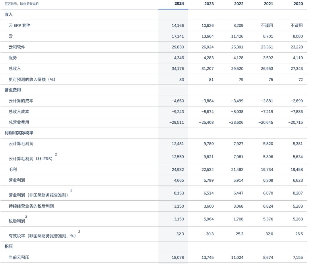 - SAP 云合同债务订单达到 630 亿欧元,成为未来增长的核心。
