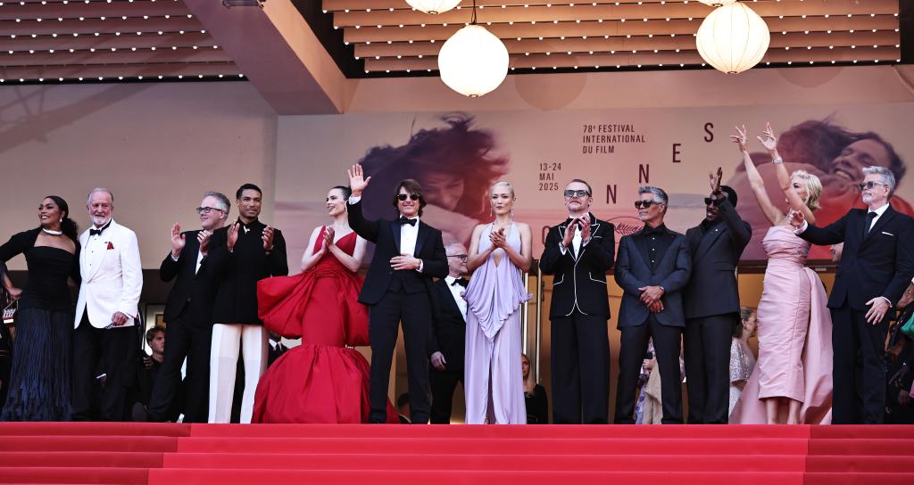 u2003u20035月14日,在法国戛纳举行的第78届戛纳电影节上,美国演员汤姆·克鲁斯(左三)等《碟中谍8》:最后清算的创作者参加了首映式。新华社记者 高静 摄