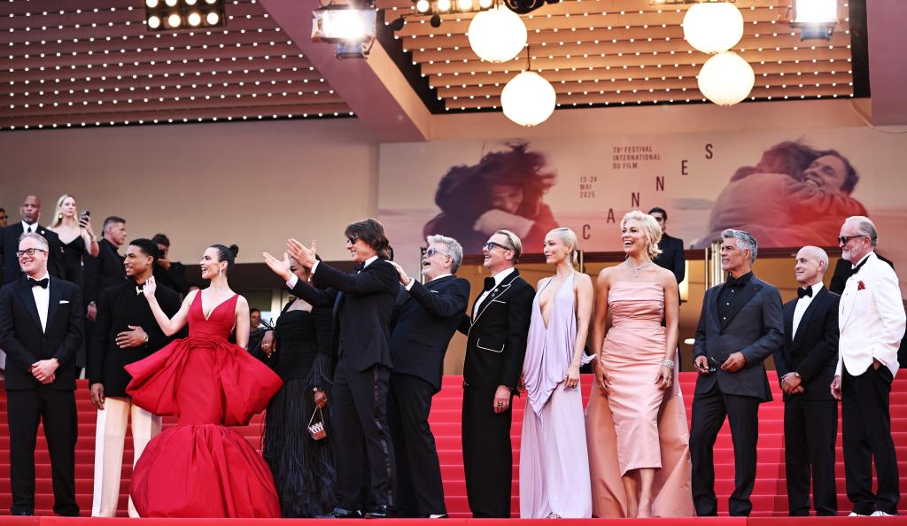 u2003u20035月14日,在法国戛纳举行的第78届戛纳电影节上,美国演员汤姆·克鲁斯(左三)等《碟中谍8》:最后清算的创作者参加了首映式。新华社记者 高静 摄
