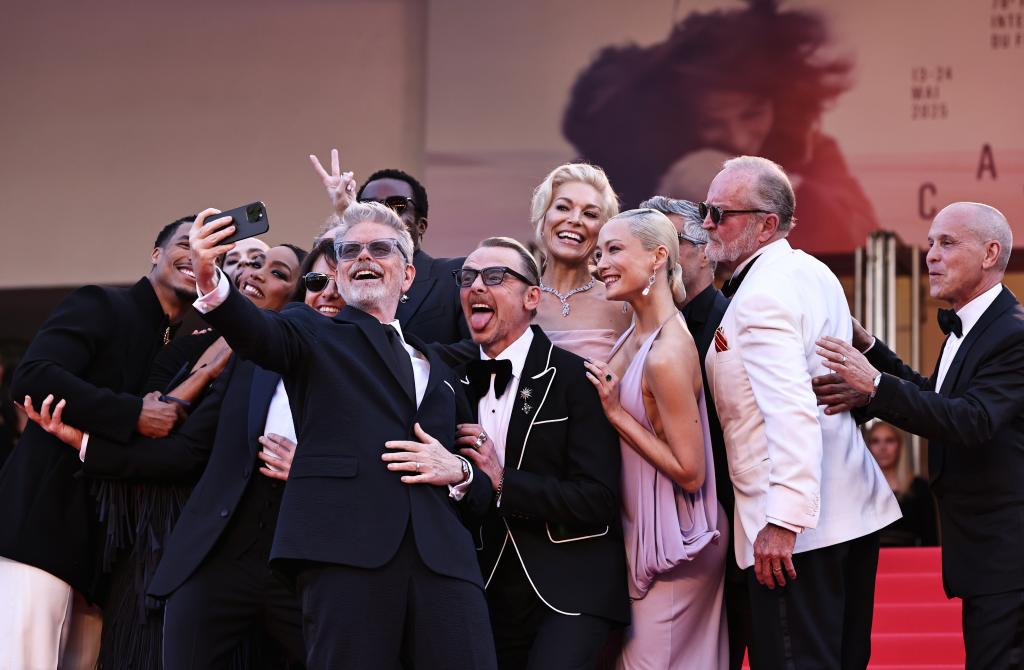 u2003u20035月14日,在法国戛纳举行的第78届戛纳电影节上,美国导演克里斯托夫·迈考利(左五)等《碟中谍8》:最后清算的创作者在首映式上自拍。新华社记者 高静 摄