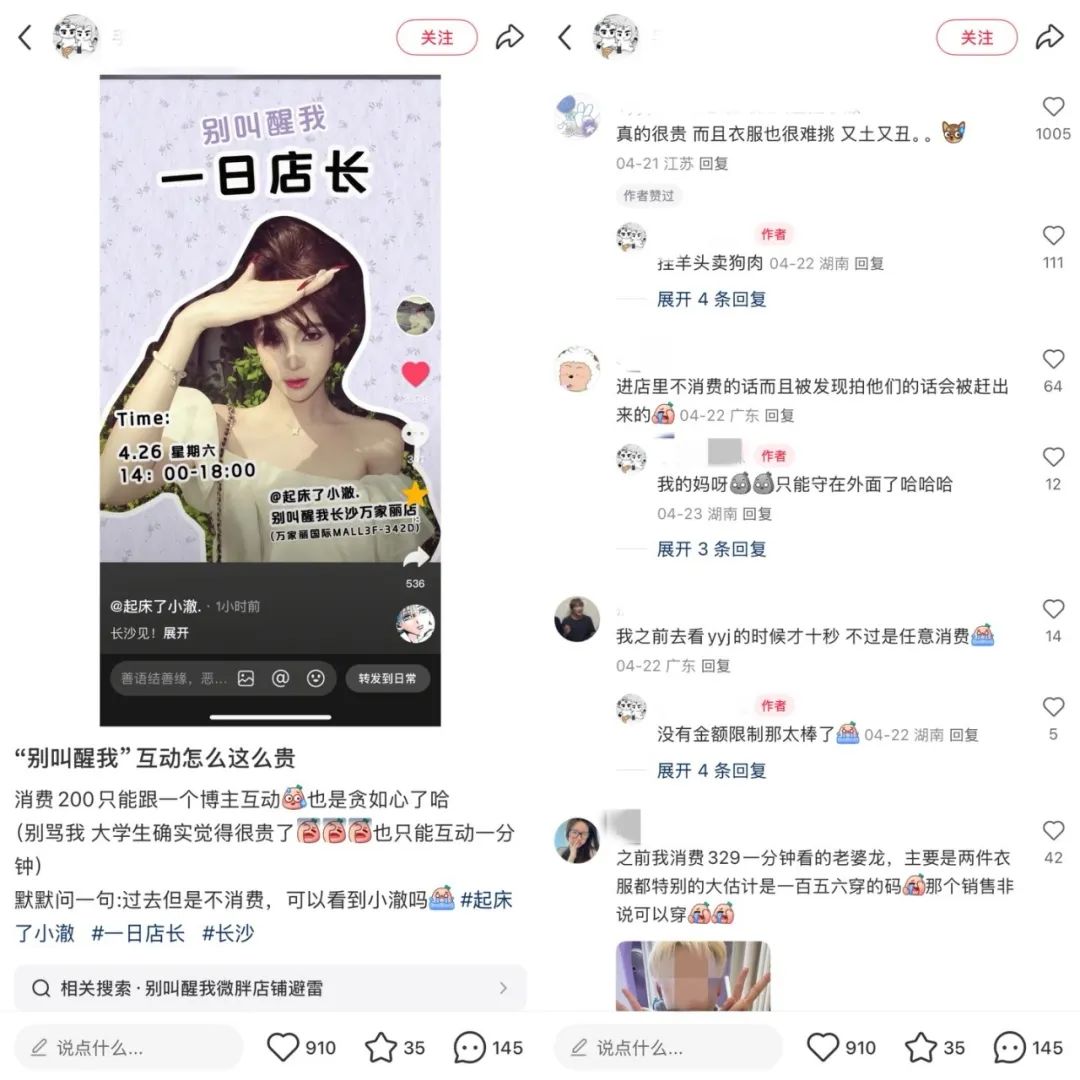 小红书里有顾客抱怨店长一天的活动:互动消费价格高,没有参与性等。如果这种负面评价是醇厚的,会对品牌口碑造成不可挽回的反击。