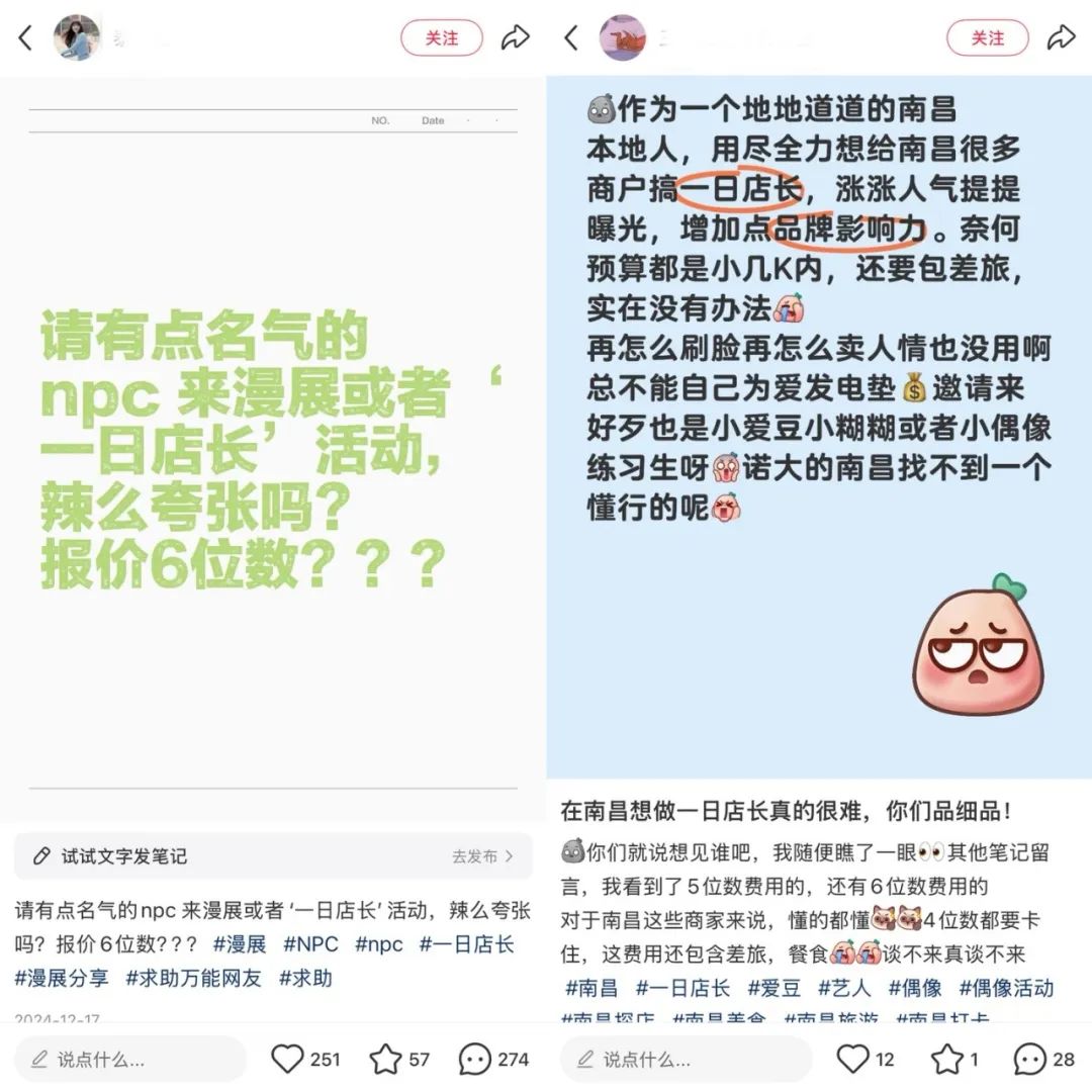 同时,一日店长活动的高成本和低收益差异也对品牌和KOL提出了新的挑战。一方面,数百万粉丝的博主在选择线下合作时会更加谨慎,他们会考虑活动特点、品牌口碑等因素,使得品牌与顶级博主的合作更加困难。