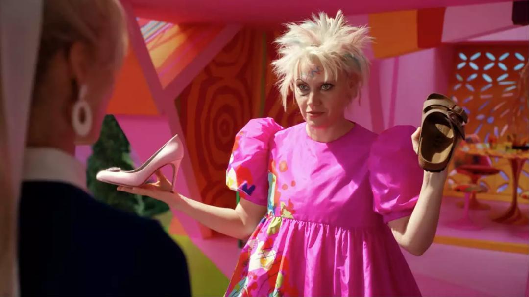 在高跟鞋和勃肯鞋之间选择芭比;来源:芭比电影