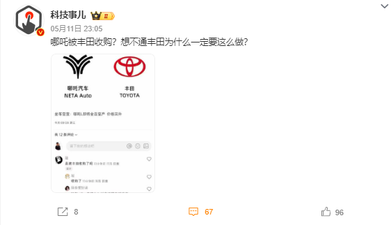 “丰田正在谈判收购哪吒汽车”的消息在2025年5月12日在市场上传出,引起了业内外的广泛关注。