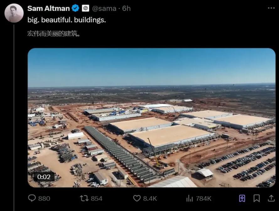 2025 年 5 月,OpenAI 创始人山姆・戴着安全帽的奥特曼,站在德克萨斯州阿比林市 “星际之门” 超级计算园区前,后面是规划中的工地。 10 个数据中心 —— 这个占地 354 计划容纳万平方米 10 万台 GB200 计算集群的庞然大物,被认为是美国 AI 基础设施的 未来的图腾。随着 OpenAI 推出 “OpenAI for Countries” 计划,试图 5000 以亿美元投资为起点,在全球范围内复制 “星际之门” 方法,一场关于 AI 中美之间,时代基础设施霸权的争夺正在悄然进行。
