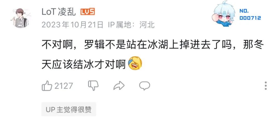 然而,除了众多投赞成票的观众,也有人提出了疑问:罗辑不得不掉进冰湖悟道,成为剑士。你能在这里找到冰湖吗?