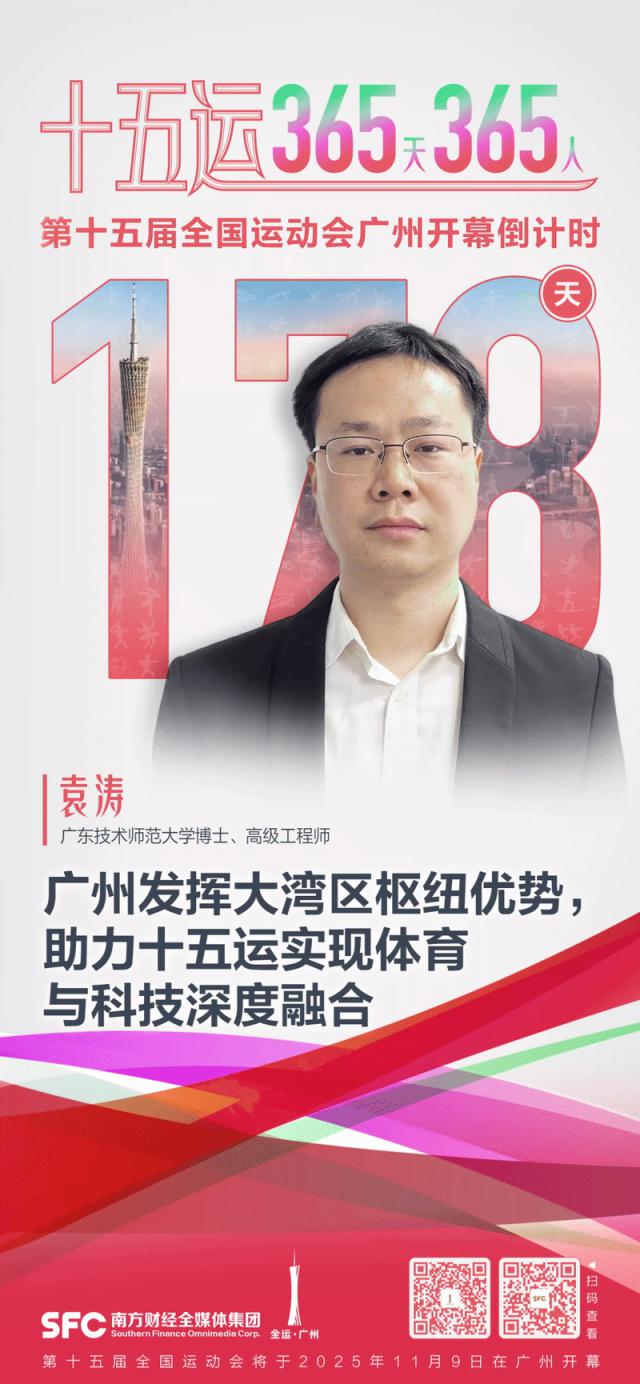 第十五届全国运动会将在 2025 年 11 月份在粤港澳三地举行。它是一项体育赛事,也是促进全民健身、促进体育事业高质量发展的重要机遇。在十五运会开幕倒计时一周年之际,南方财经全媒体集团与十五运会、残特奥会广州赛区执委会推出“十五运会” 365 天 365 “人”栏目聚焦选手、企业家、专家学者、体育爱好者、公众的全运故事和全运期待,让更多人了解和支持十五运,生动展现中国的体育精神、城市活力和文化魅力。