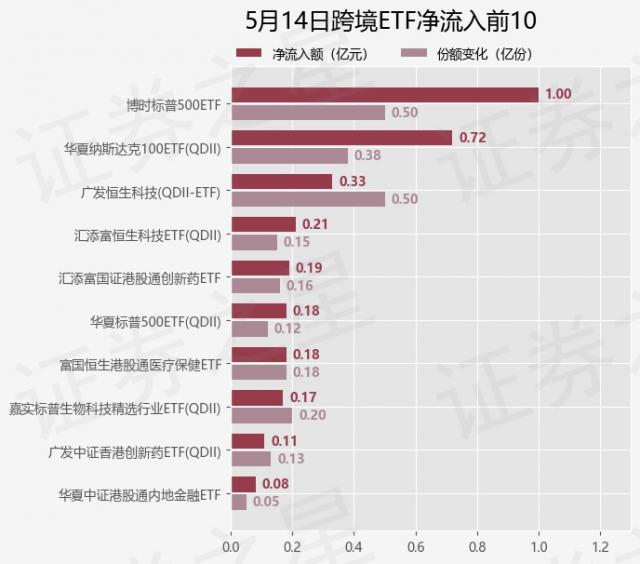 当天有 27 只跨境 ETF 资金净流入出现在基金中,其中博时标普是净流入排名第一。 500ETF(513500)增加了份额 5000.0 万份,净流入额为 1.0 亿元。
