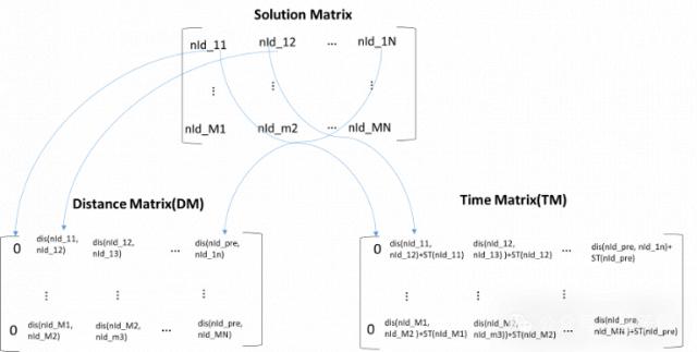 该研究团队提出的最新算法框架专门为高耗时的路径调解评估制定了创新技术。核心思想是将传统的可行性和成本评估转化为矩阵运算,并调用升腾。 NPU 算法,然后实现路径调解的高效评估,如图所示, solution、属性矩阵化,如距离、时间等。