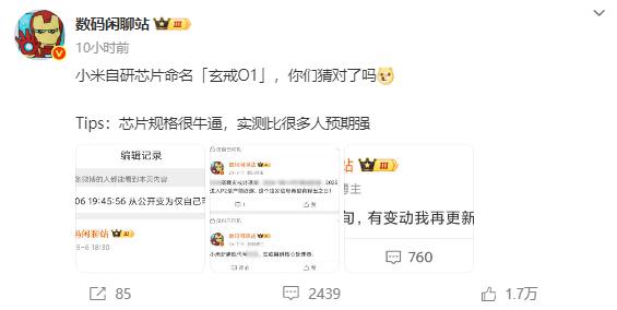 此外,雷军微博的尾巴显示来自“小米手机”,这意味着雷军已经更换了即将发布的小米新机器。在此之前,他一直在使用小米。 15 Ultra。