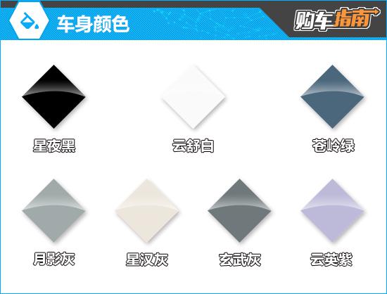 车身颜色方面,新车提供苍岭绿、月影灰、星夜黑、云舒白、云英紫、星汉灰、玄武灰等。 7 颜色可选;其中,星汉灰和玄武灰需要加价选择,价格是 6000 人民币。就实际效果而言,月影灰和云英紫颜值出众,客户可优先考虑。