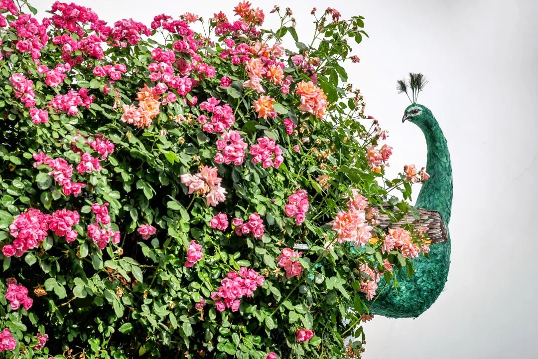 花园专门做了很多拍照打卡点,情侣、闺蜜、亲子家庭都可以在这里找到自己浪漫的角落。最受欢迎的是戴着花帽的大猩猩。它憨厚的外表搭配五颜六色的花朵,成为公园里的“网络名人”。每天都有很多游客排队和它合影。