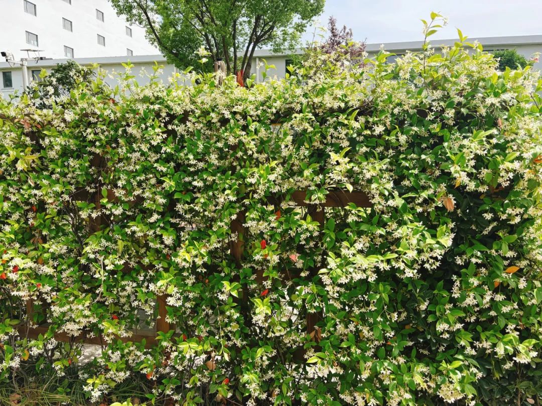 今年的花墙格外绚丽,玫瑰、月季、玫瑰竞相绽放,层层叠叠的花瓣在阳光下闪耀着温柔的光泽。