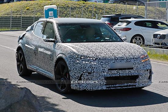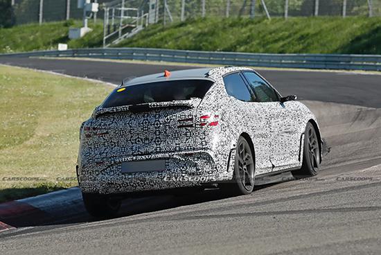 根据这次曝光的谍照,测试车的整体轮廓更加清晰,接近量产版。大灯是捷尼赛思经典的水平双线分体设计。前围左右两侧提供垂直规划的导风槽,中间辅以超小前唇和散热口,充满运动感。