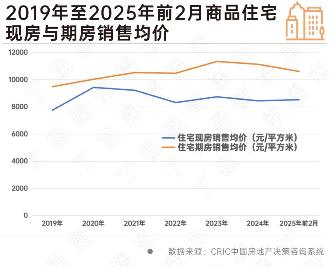 根据国家统计局的数据,2025年全国现房销售面积1-2月达到2960.83万平方米,期房销售面积达到6246.16万平方米,目前房屋销售面积的比例已经上升到32.16%。比2024年全年26.97%增长5.19%,比2020年低点增长近22%。